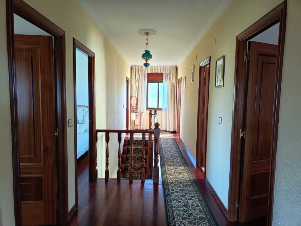 Subiendo por la escalera de madera, accedes a la planta alta donde se ubican cinco amplias habitaciones y otro cuarto de baño. La galería cerrada te permitirá disfrutar de las vistas durante todo el año. El exterior de la casa es igualmente impresionante, con un terreno cerrado que incluye árboles frutales y un segundo garaje en la esquina de la parcela. Situada cerca de los impresionantes cañones del Sil y próxima al embarcadero de Doade, esta propiedad combina naturaleza y comodidad en un solo lugar.